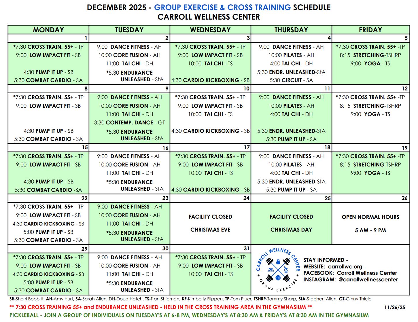 From dance-based cardio and strength circuits to yoga, cycling, and core-focused sessions, there’s something for every fitness level and interest. Group Exercise is a great way to stay accountable, challenge yourself, and connect with others — all while having a blast!